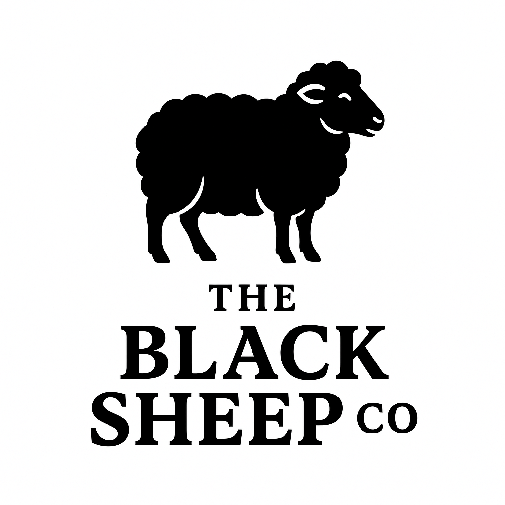 Black Sheep Graphic Hoodie — Bold Diagonal Text & Logo Pattern