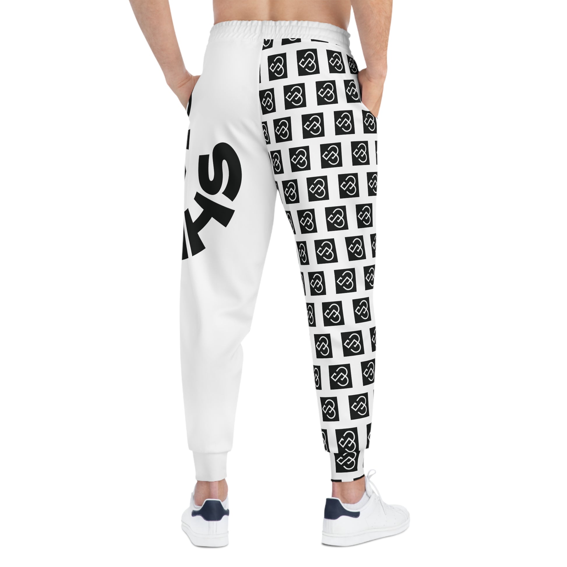 Black & White Logo Pattern Athletic Joggers
